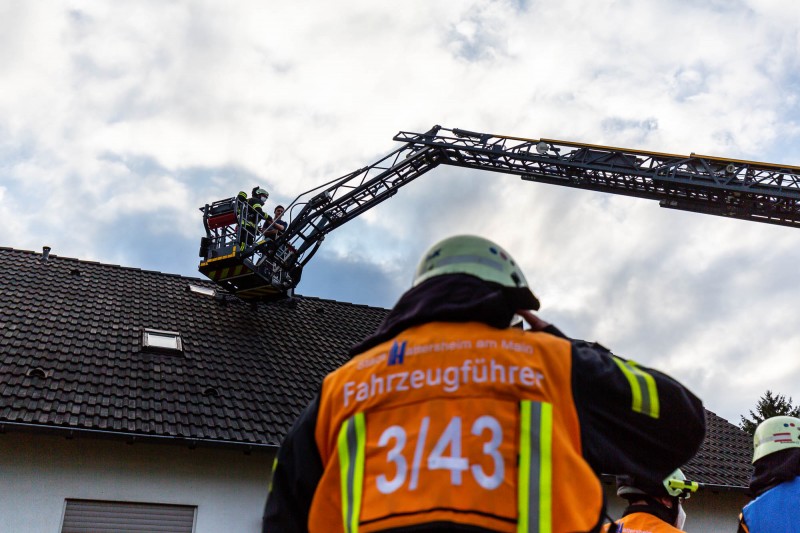 Den eintreffenden Kräften bot sich zunächst eine unübersichtliche Lage. Einige Kinder machten sich an Fenstern bemerkbar oder drohten gar vom Dach zu springen. Weitere waren in dem stark verrauchten Haus vermisst. Umgehend wurden massive Kräfte zur Menschenrettung und Brandbekämpfung eingesetzt. Neben dem Übungsschwerpunkt der Menschenrettung und des Atemschutzeinsatzes, stand der Einsatz von tragbaren Leitern und Drehleiter sowie die Fahrzeugaufstellung, das neue Hygienekonzept, die Atemschutzüberwachung und der Einsatzablauf im ELW 1 im Fokus.
