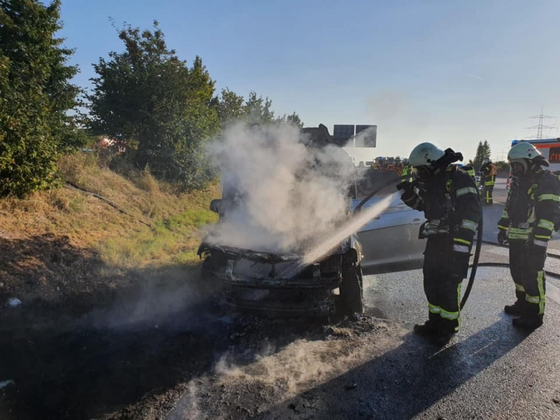 Dem Tanklöschfahrzeug der Feuerwehr Hattersheim am Main wurde bei einer Bewegungsfahrt ein brennender Pkw auf der BAB 66 an der Abfahrt Hattersheim West gemeldet.