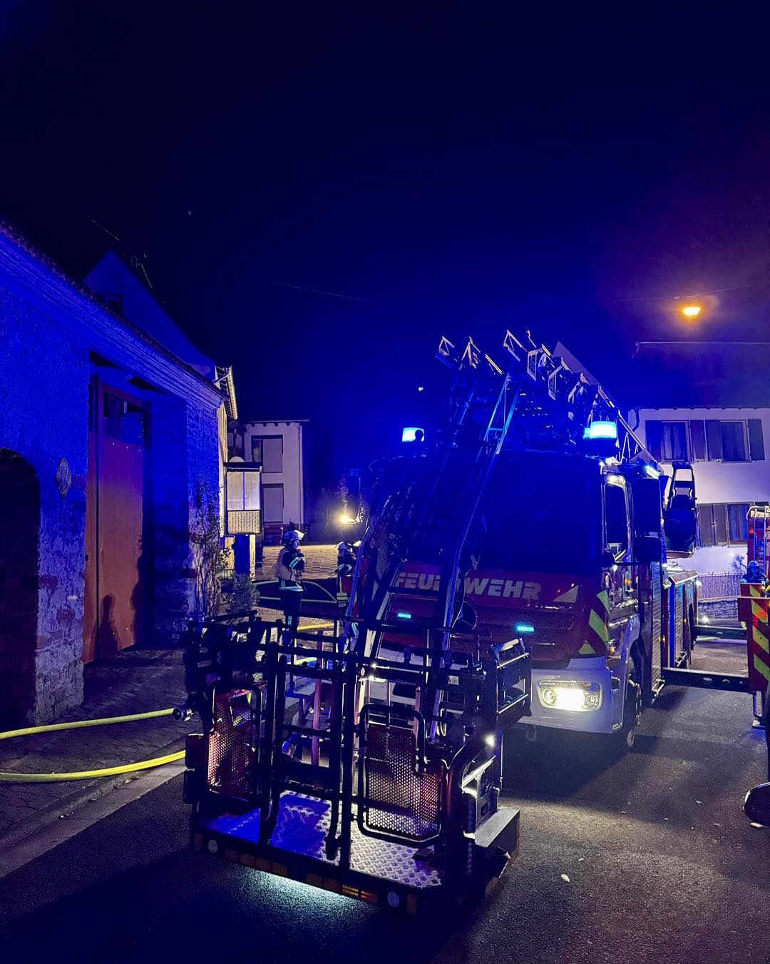 Unsere Drehleiter wurde am frühen Morgen mit der Meldung „Dachstuhlbrand“ zur Löschzugergänzung der Feuerwehr Hofheim alarmiert.