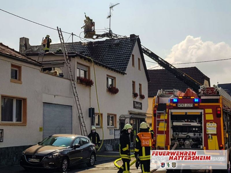 Aufgrund der schnell zunehmenden Rauchentwicklung wurde eine zweite Drehleiter der Freiwillige Feuerwehr Hofheim am Taunus sowie ein Löschfahrzeug mit Atemschutzgeräteträgern von der Feuerwehr Kriftel nachalarmiert. Durch einen gezielten und schnellen Einsatz konnte die Ausbreitung des Feuers auf den gesamten Dachstuhl verhindert werden. Die Nachlöscharbeiten, die unter anderem das teilweise Öffnen des Daches erforderlich machte, dauerten noch rund 1,5 Stunden an. Insgesamt waren 60 Einsatzkräfte vor Ort.