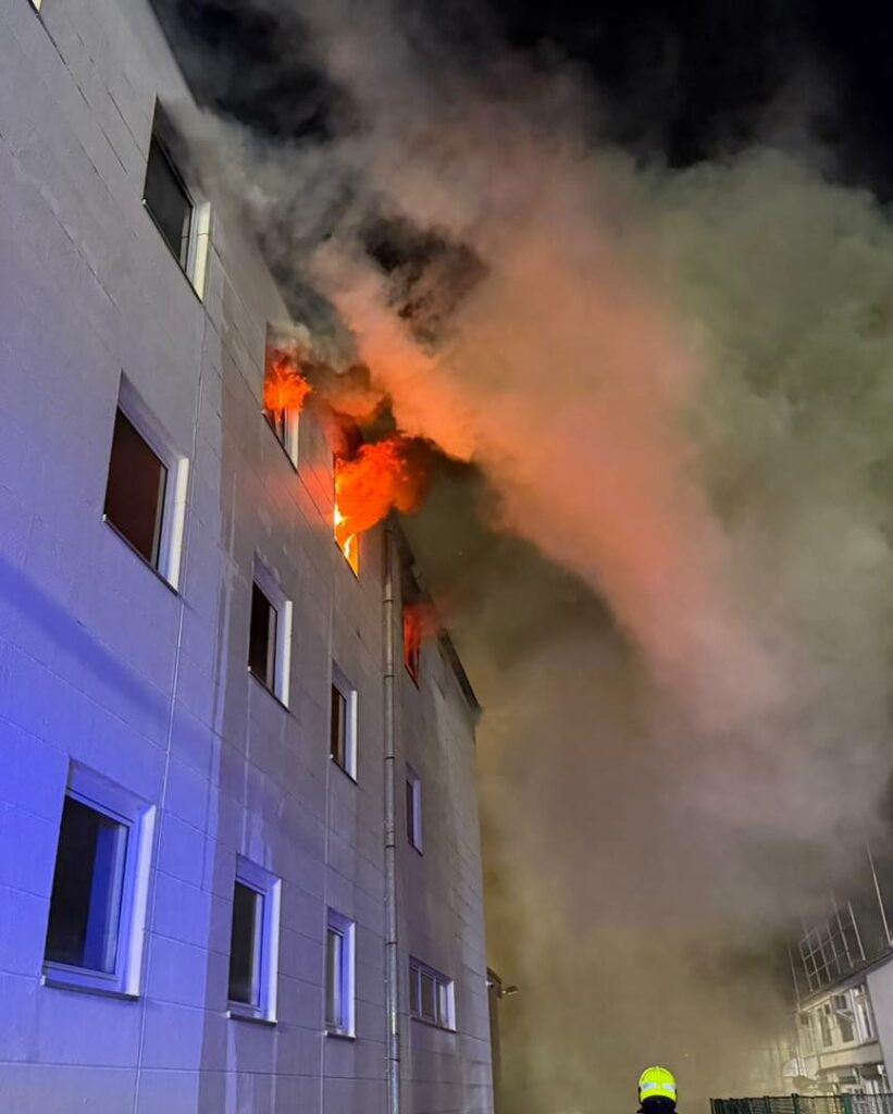Der Einsatz dauerte insgesamt über 15 Stunden. Von zeitweise drei Drehleitern aus und außschließlich von außen brachten wir das Feuer unter Kontrolle und konnten es schlußendlich löschen.