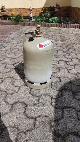 Ein Trupp unter Atemschutz kontrollierte die Garage und konnte eine undichte Gasflasche als Ursache feststellen. Die Gasflasche wurde ins Freie getragen und die Garage belüftet.