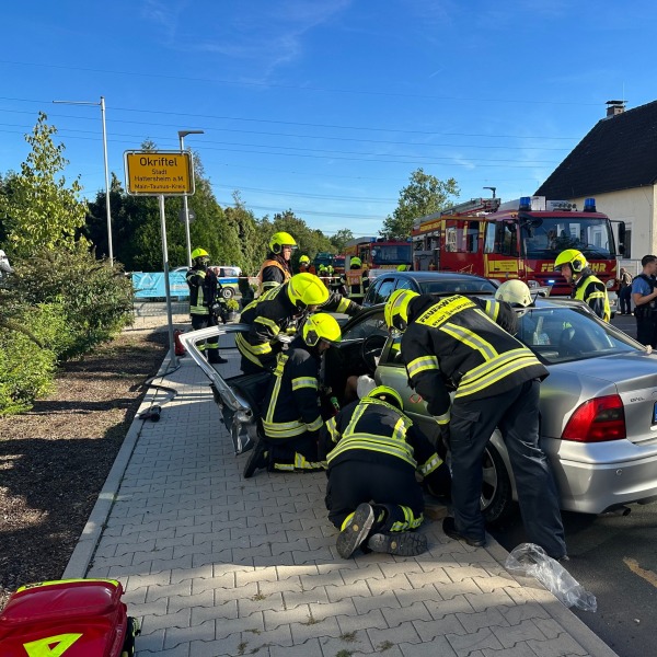 Wir wurden zu einem Verkehrsunfall mit eingeklemmten Personen auf die Landstraße zwischen Hattersheim und Okriftel alarmiert.